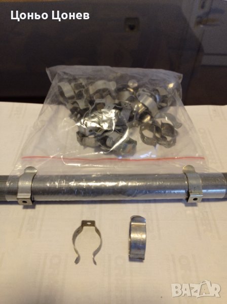Продавам стоманени поцинковани щипки за закрепване на полиетилен полиетиленово фолио по тръби Ф19 - Ф 20 мм. в оранжерии. Произведени в Холандия. Цена за един брой 0.30 лв. Количество в опаковка - 50 бр. Продават се на опаковка.