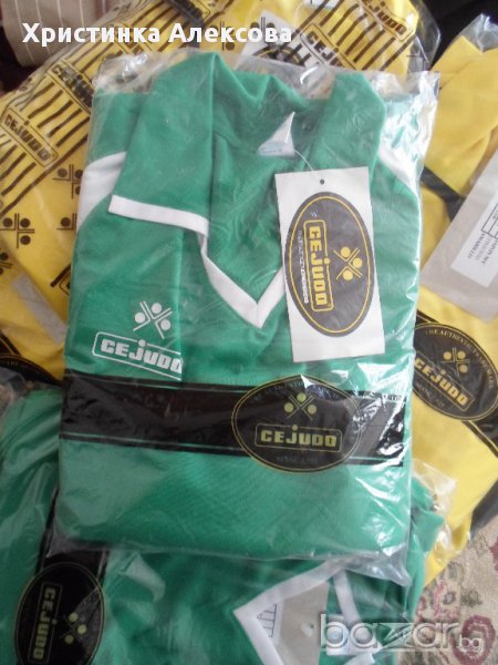 Продавам мъжки спортен комплект състоящ се от тениска и къси гащета с бандаж Комплектите са комбинация от жълто и черно и зелено с бяло