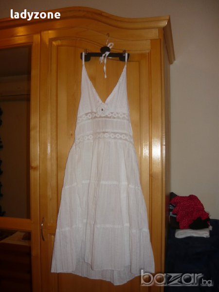 красива бяла рокля с гол гръб . материята е 100 % памук . закупена от Англия .