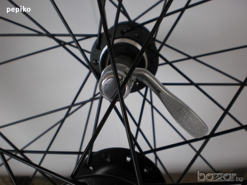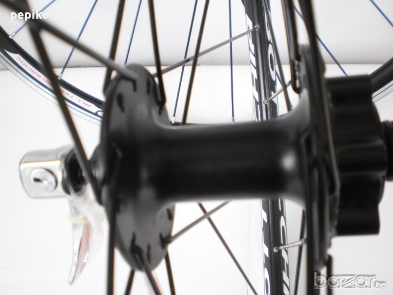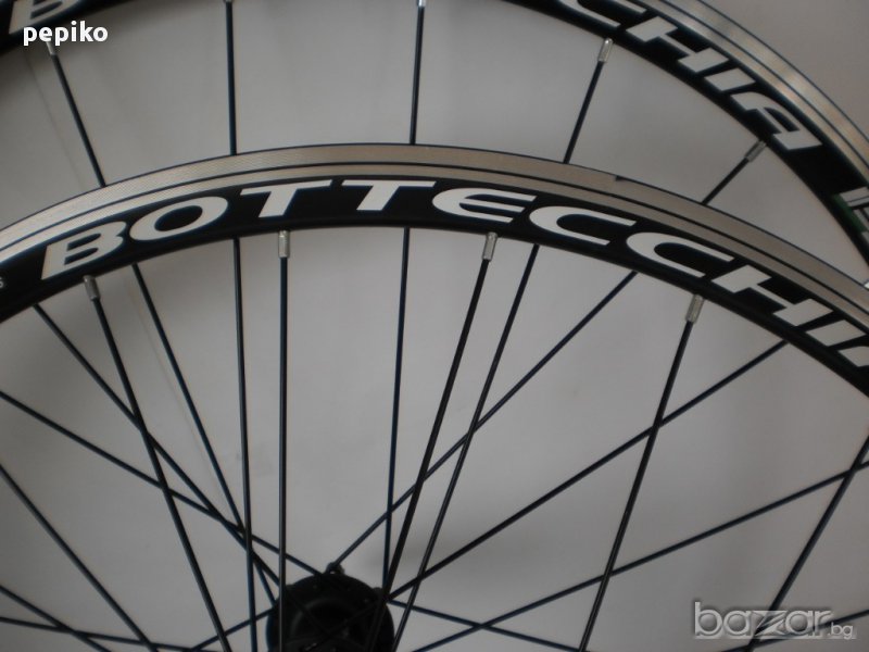 Комплект НОВИ алуминиеви капли BOTTECCHIA 26 цола за дискови спирачки или вибрейк с алуминиеви главини SHIMANO с автомати за бърз монтаж и демонтаж,задна главина на резба за 6-7-8 венеца,с емайлирани спици,с 24 отвора,изключително леки,много добри.