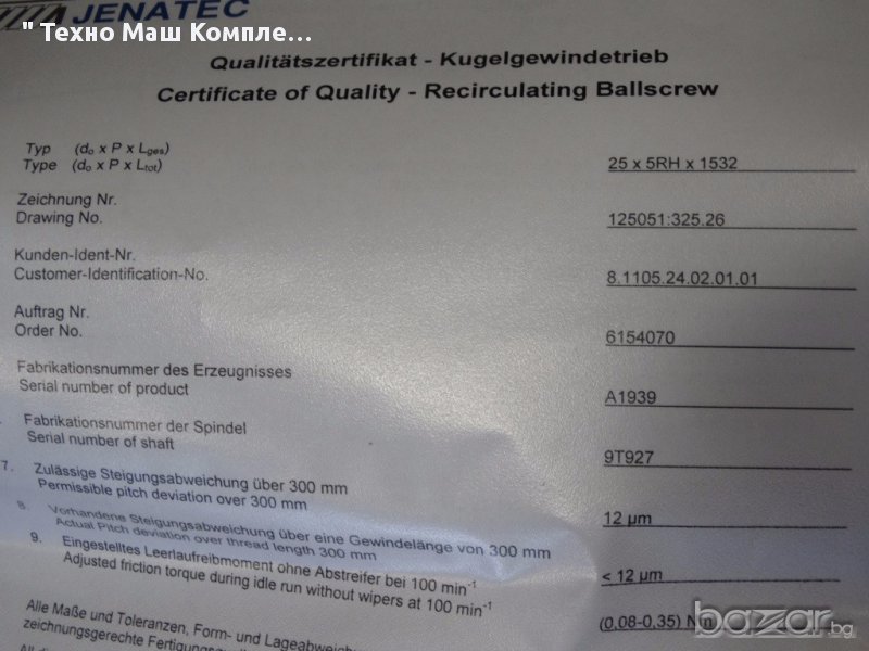 дължина на винтовата линия - 1345 мм