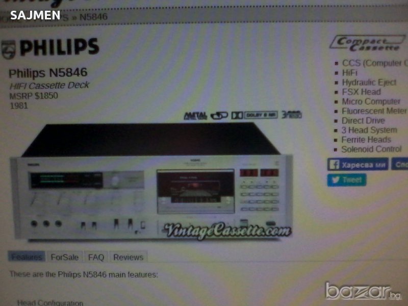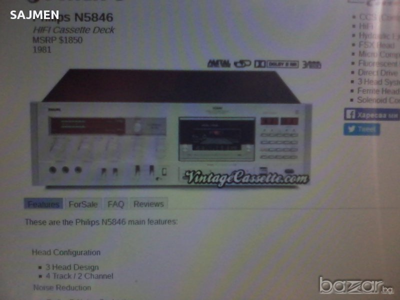 Свалянето свърши, вдигаме полека! Кой купил евтино - купил! ПРОДАВАМ ТОП МОДЕЛ ДЕК- philipsN5846, 3 HEAD High-End декът е от личната ми колекция и е в магазинно състояние почистен -сменени ,са всички зъбни колелета-чисто нови ,смазан в сервиз -глави,мотори ,тонролки,ремъци в пълен оригинал-перфектен-жесток запис информация в нета много-буквално нов-цена 2000лв