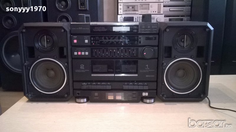 Sharp cd-x9g-голям двукасетъчен-внос швеицария...ретро машина от шарп...всичко работи...апсолютно всичко...без ремонти и забележки....цд и 2 касети...тунер и усилвател и 2 колони...класа и стил...има и индикатори и вход-от днес 28.02.22г пращаме със спиди или еконт с преглед и тест след превод на капаро за куриерската услуга поради зачестили некоректни потребители-поръчки само в тук в саита! по телефона и със смс не! краини цени! бартери не правиме! всеки ден нови неща-още 2-3 наши обяви тук