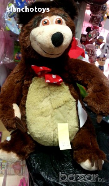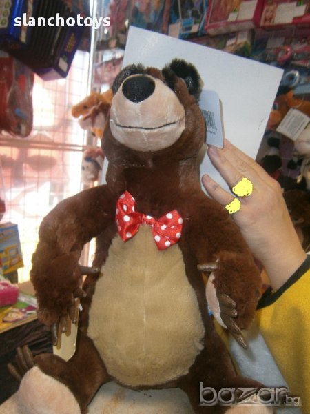 Плюшен мечок,от филмчето за ''Маша и мечока''. 25 см. Музикален. Има го и с 5 песнички на бълхгарски+1 приказка, на цена 25лв. Доставка с Еконт или лично за Сф. Има го и в по-голям размер, 30см или 120см.