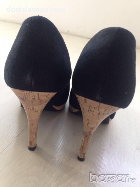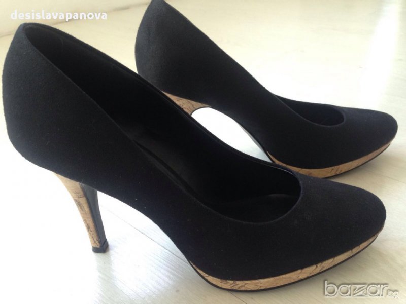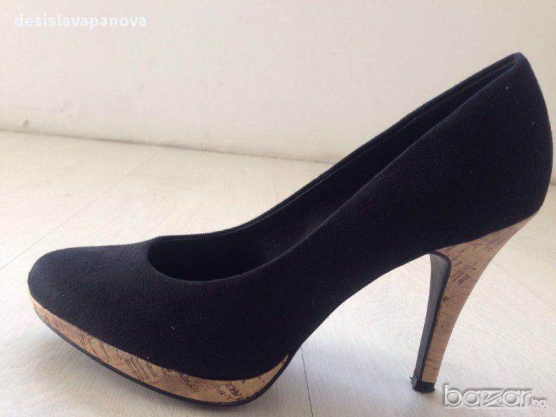 Стилни и елегантни дамски обувки. Подходящи както за ежедневие, така и за делови срещи. Чисто нови са. Височина тока от външна страна - 10 см., височина на тока от вътрешна страна - 7,5 с., височина на платформата отпред - 1 см. дължина на стелката - 25,3 см.