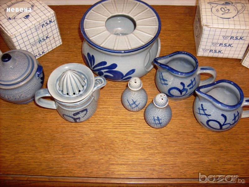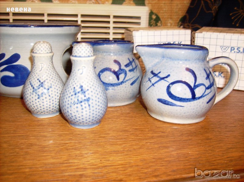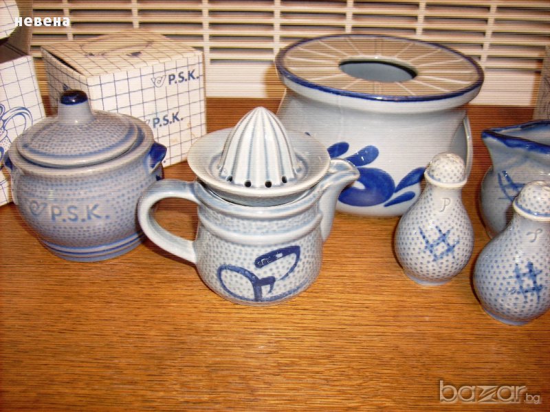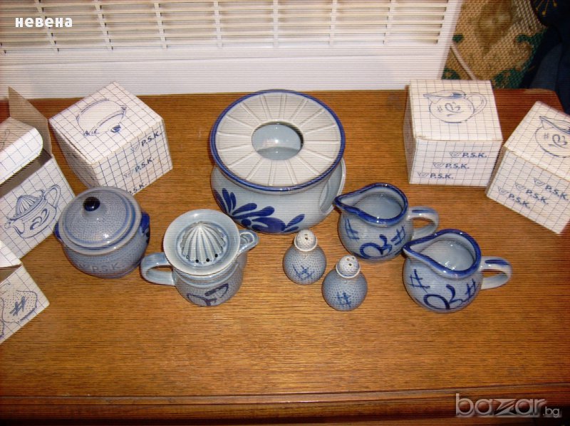 Нов Винтидж баварски порцеланов лот ръчно рисуван Маркирани Свещник вис 10 диаметър 14 см ,две канички с височина 9 см каничка сокоистисквачка за лимонче 9 см солници 7 см и малко бурканче 8 см Всички са с кутиите си освен свещника Цената е за всичко без коментар