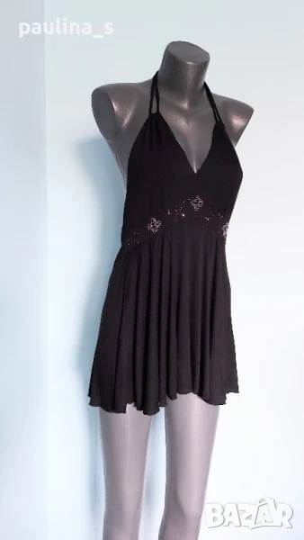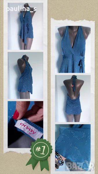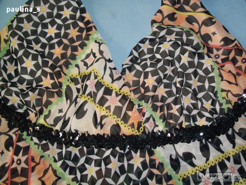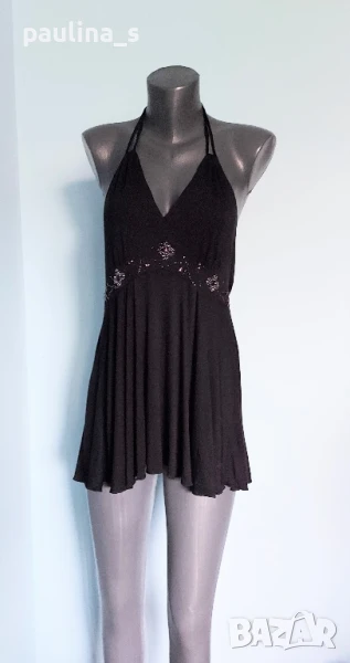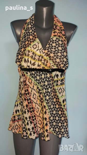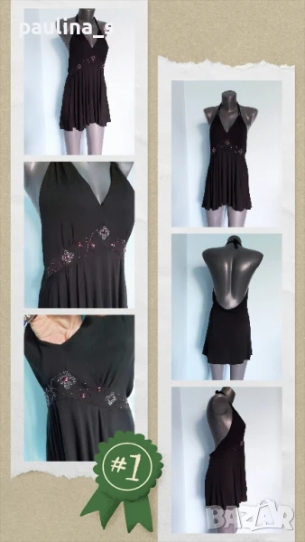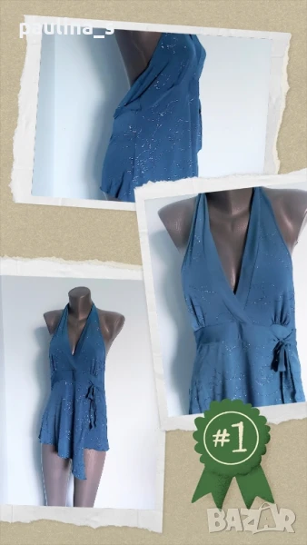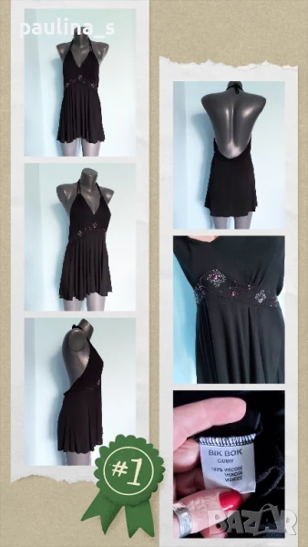 3️⃣. Колаж / L / 2XL - "Bik Bok". Цената е крайна 19,99лв / 10 евро. Маркова туника с декорации от камъни и мъниста, голям размер с еластичност. Моделът е с бюстие в горната част, долу е разкроен. Материята е еластична вискоза, хипоалергична и покрива няколко размера. Без дефекти и етикет, като нова, вижда се на етикета.