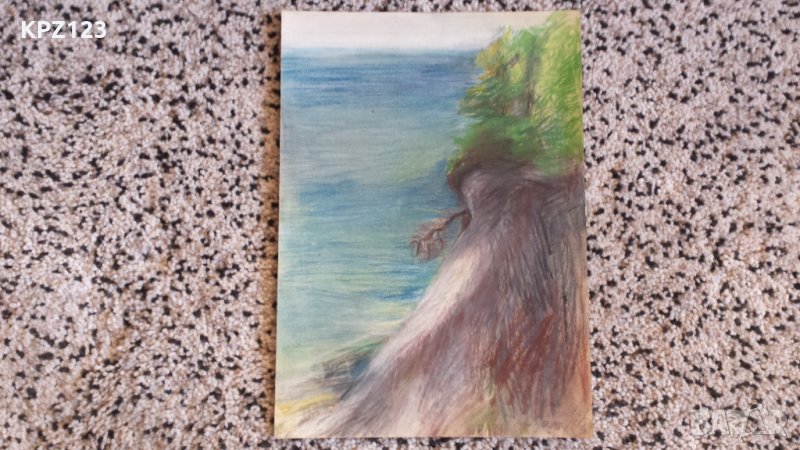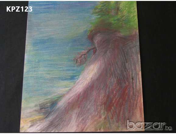 Картина бряг. Пастел, подписана от Мария Междуречка и датирана 1979 година. Размери : 30 на 42 сантиметра.