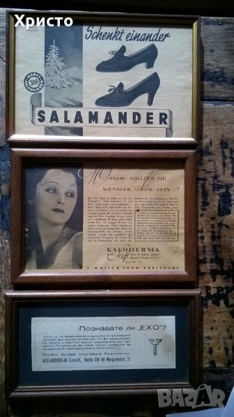 Продавам антикварни, оригинални реклами, от преди 1944 година, в рамка и антирефлексно стъкло, не са копия, от списания и рекламни издания: