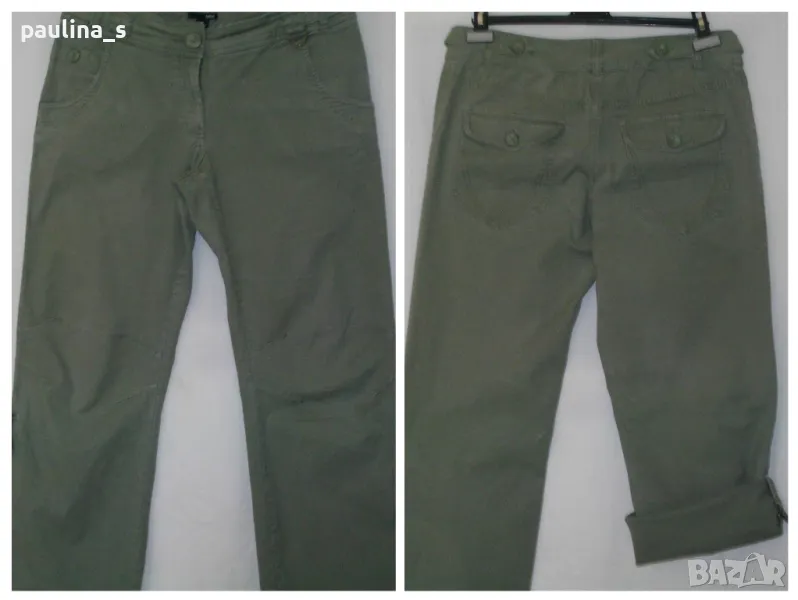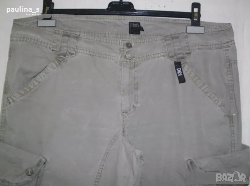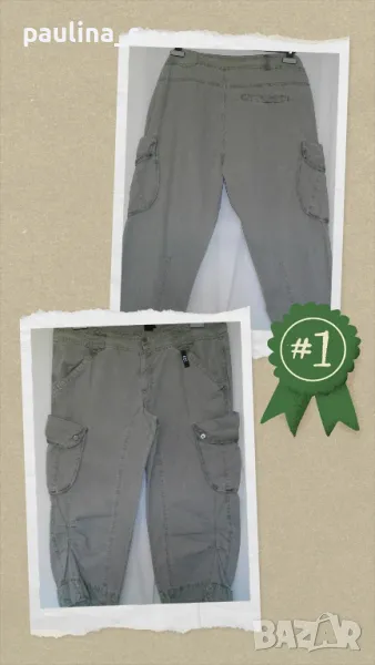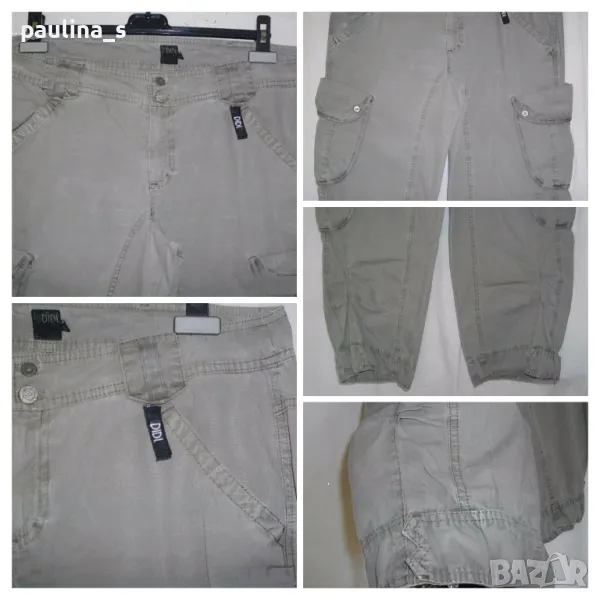 5️⃣. Колаж / L / 2XL - "DIDI". Цената е крайна 19,99лв / 9,8 евро. Дамски дънков карго панталон. Моделът е спортен,редните джобове са шпиц, а отстрани на бедрата има необемни украсителни джобове с капаци. Областта под коленете е фиксирана с набори и басти, долу завършват с оригинални маншети. Цветът е сив и подхожда на всичко. Имат избелващ ефект на тегелите. Не са нови, но са без дефекти.