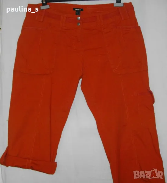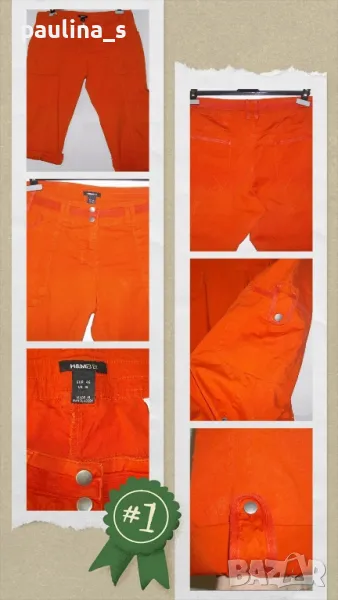 2️⃣. Колаж / Винтидж / XL / 3XL - "H&M" BB. Цената е крайна 29,99лв / 14,3 евро. Дамски оранжеви еластични карго модел панталони тип дънки. Материята е фин памук с 2% ликра. Джобовете отпред са обемни, навсякъде са обазовани с памучна нееластична лента с избелващ ефект. Талията е нормална до ниска, дължината на крачолите се регулира с лента и копче. Качеството на изработката е гарантирано от бранда, вече не се произвеждат дрехи с такова качество! Не са нови, но са без дефекти.