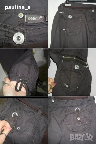 1️⃣ . Колаж / Винтидж / L / 2XL - "X - Mail". Цената е крайна 19,99лв / 9,8 евро. Летен карго модел дънки, от памучен плат, тъмно кафяви. Винтидж, дрехи с такова качество не се произвеждат вече. Имат избелващ ефект, джобове и кабси. Джобовете са по двойки, всички са асиметрични и ефектни. Долу крачолите се регулират с шнурове, стават на шалвари. Една бройка, не са нови, но са без дефекти.