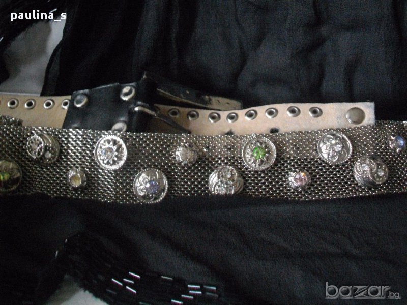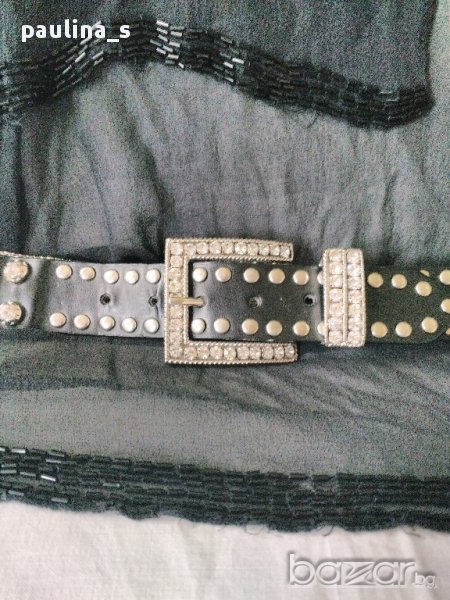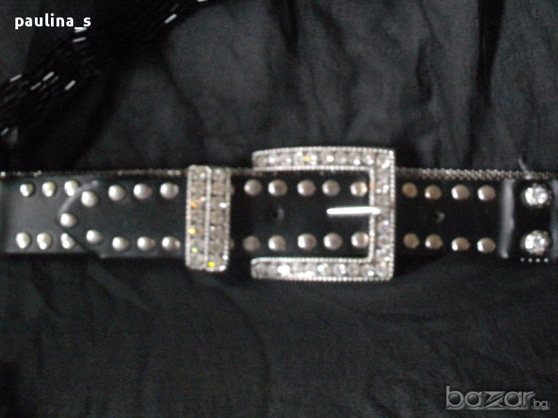 Много оригинален колан за дънки, декориран с много камъни, нов. Кожата е висококачествена артифициална, използван на манекен за декорация на ревю. Изключително атрактивен!
