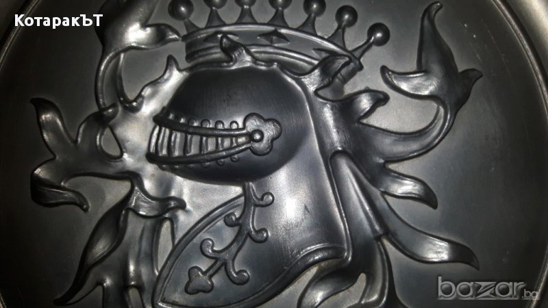 Релефно голямо масивно /1,45 кг/ пано с герб - рицарски шлем с украса, цветен метал /цинк?/
