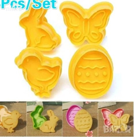 4 форми великденски яйце заек пиле пеперуда бутало резец украса сладки торта бисквитки фондан → Обява 14492674