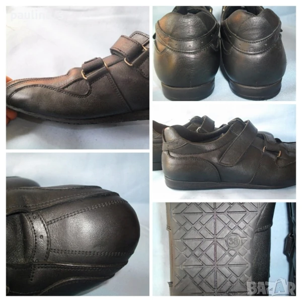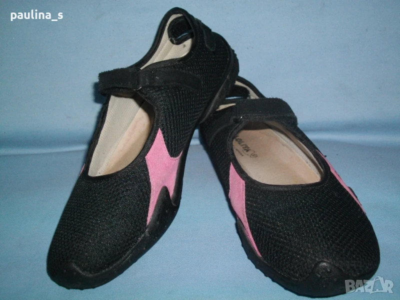 ортопедични маратонки-обувки, от естествена кожа. Номер 38. Цената е крайна 49,99лв / 25 евро. Произведени в България, като нови, купени на тройна цена. Отгоре са с лепещо се - велкро, а не с връзки. Обувките са много удобни, със супинаторна подложка за плосксъпие и превенция на много заболявания на опорно-двигателния апарат. Подходящи са за спорт, дълго ходене, работата в право състояние, актуални и практични, почти не са носени, като нови. Купени са за 145лв. Номер 38 / Стелка 25см.