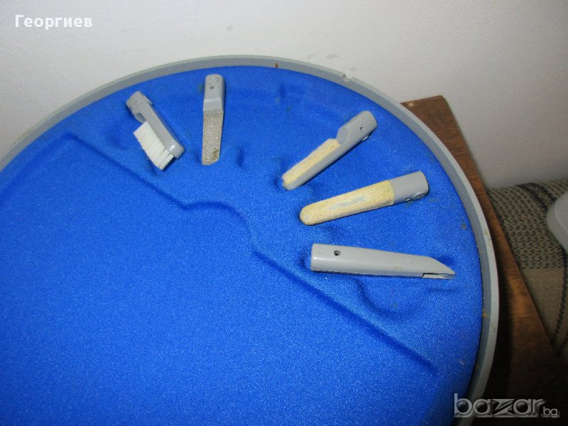 Комплекта е работещ . Има пилички, четки и разни неща които се виждат