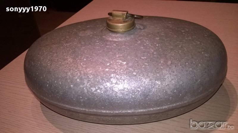 Ретро манерка-плосък съд за съхранение на течности 29/20/13см...стар метален съд...за нагревки или друго...с месингова капачка е-от днес 28.02.22г пращаме със спиди или еконт с преглед и тест след превод на капаро за куриерската услуга поради зачестили некоректни потребители-поръчки само в тук в саита! по телефона и със смс не! краини цени! бартери не правиме! всеки ден нови неща-още 2-3 наши обяви тук