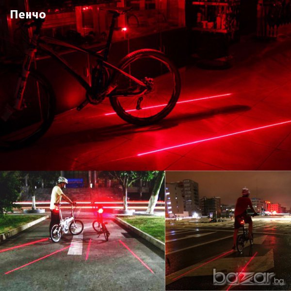 Стоп светлина за колело и мотор с лазер за безопасно каране, мигаща светлина, водоустойчив