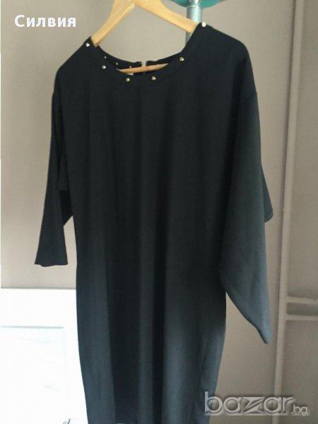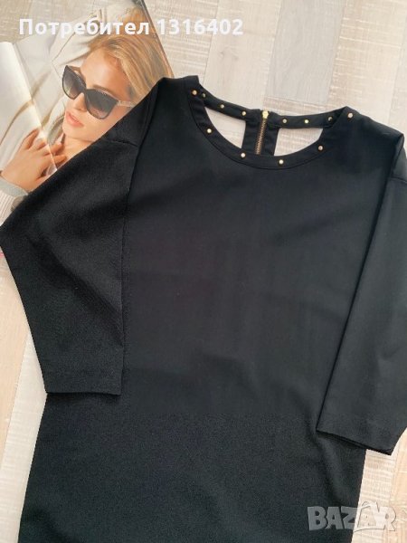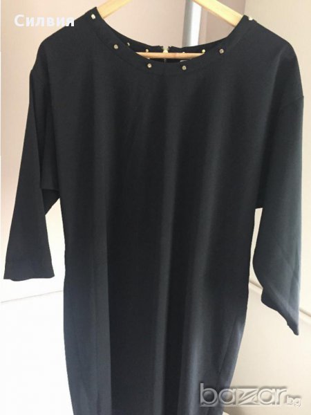 Интересен модел рокля ,марка "H&М",размер 38/М.Горната част е по широка,а надолу се стеснява,с 3/4 ръкав,и цип на гърба.Ширина на подмишници-48см,цяла дължина 79 см.В отлично състояние.