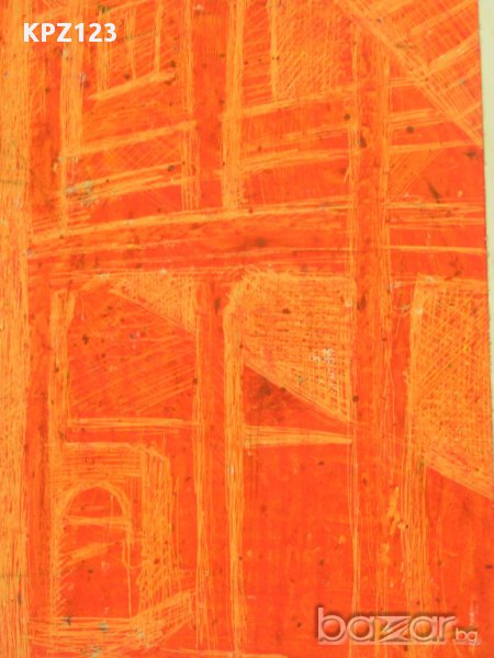 Рисунка на къща с размери: 23см. х 34см.Техника гратаж, картона се покрива с восък или парафин, грундира се с боя и след това се издрасква с помощта на писец.