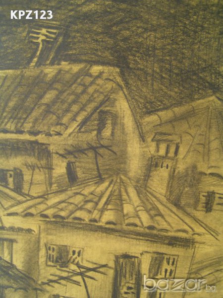 Картина графика, покриви на къщи, молив върху картон с размери: 35 см х 47 см.