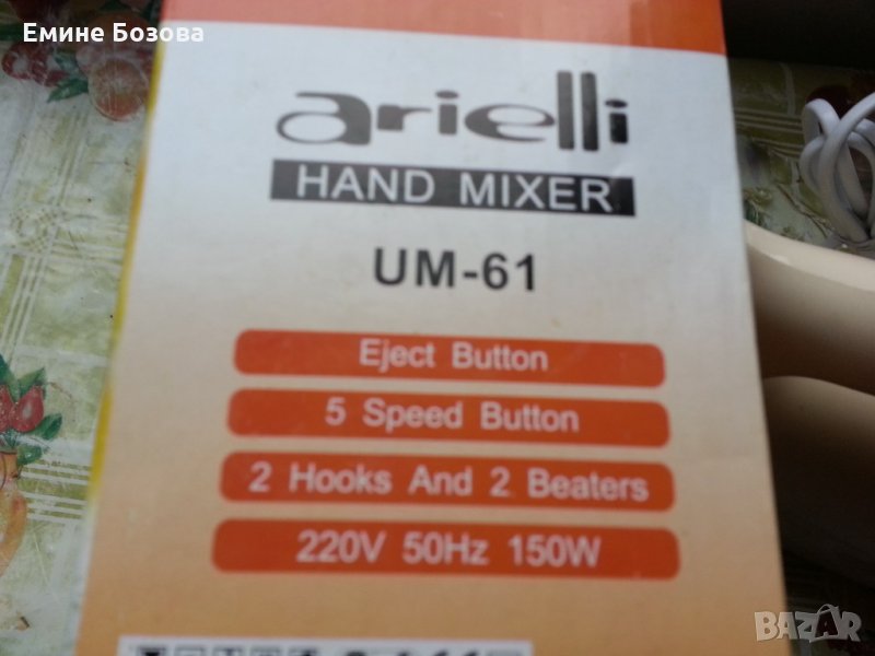 4. Миксер нов Arielli 150W 220V 50Hz 5 степени 2вида бъркалки-яйца,тесто.Цена 29лв