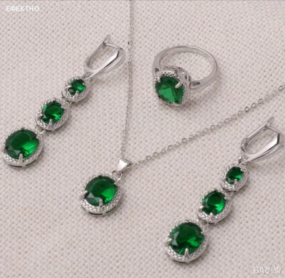 Различни модели сребърни обици, гривна,, колие.Комплект → Обява 14607372