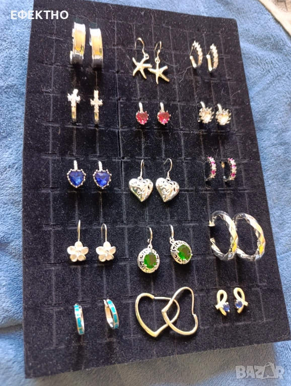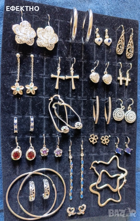 Много различни сребърни обици, колие, гривна