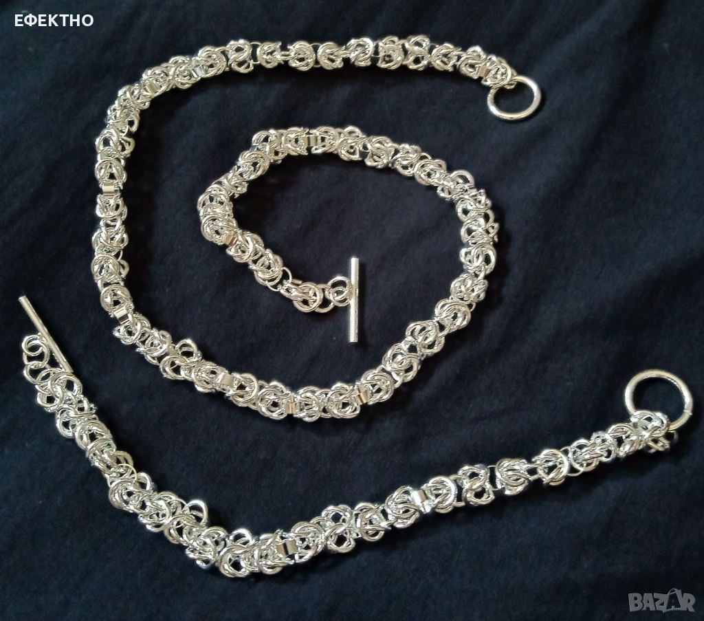 Сребърен ланец и сребърна гривна. Комплект, в кутия. → Обява 14607379