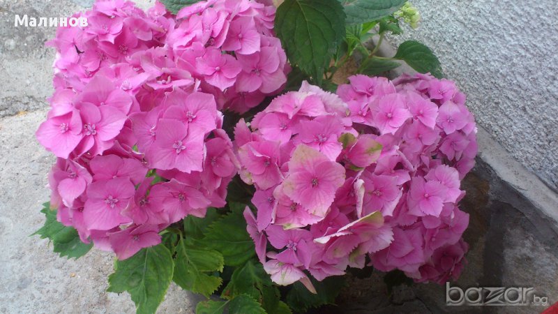 Продавам и обикновена розова хортензия. За разлика от холандските сортове по магазините, моята издържа на студ, може да зимува навън в дори само в големи кашпи.