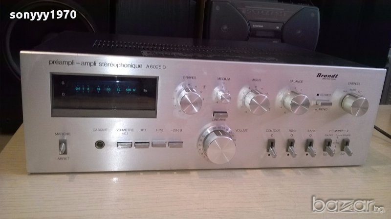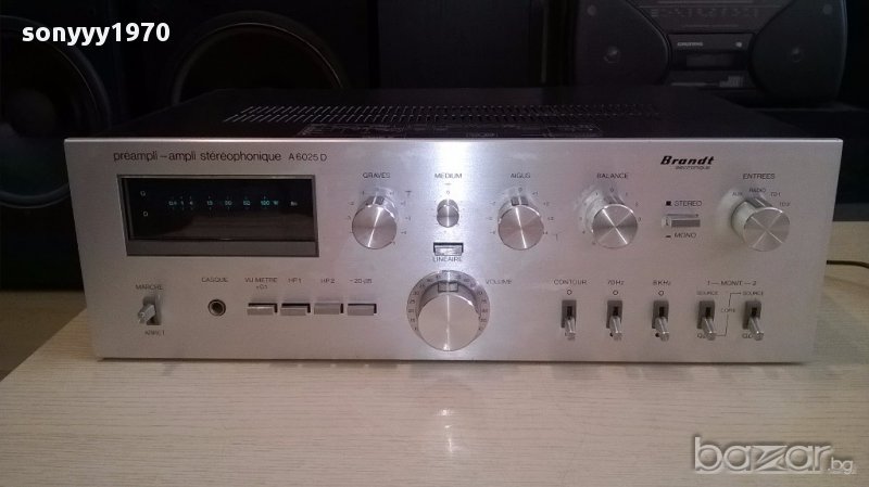 Brandt a6525d preampli-280w-ampli-made in japan-внос швеицария...японска маркова ретро машина...нов внос и като нова...работи идеално...алуминиев панел и жестоки индикатори в зелено...свири много здраво-от днес 28.02.22г пращаме със спиди или еконт с преглед и тест след превод на капаро за куриерската услуга поради зачестили некоректни потребители-поръчки само в тук в саита! по телефона и със смс не! краини цени! бартери не правиме! всеки ден нови неща-още 2-3 наши обяви тук