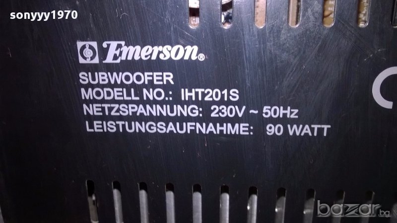 Emerson iht201s-subwoofer 90watt-за ремонт-38/37/20см-внос швеицария...не се включва...за ремонт-нов внос голям и тежък е...има вграден 6 канален усилвател и говорител...и изходи за още 5 колони.от днес 28.02.22г пращаме със спиди или еконт с преглед и тест след превод на капаро за куриерската услуга поради зачестили некоректни потребители-поръчки само в тук в саита! по телефона и със смс не! краини цени! бартери не правиме! всеки ден нови неща-още над 18000 обяви тук