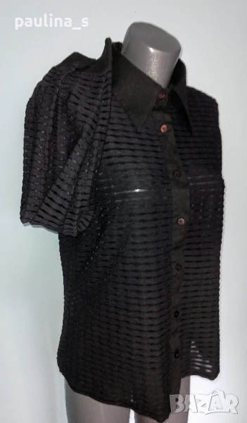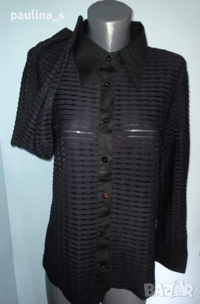 2️⃣. Колаж / XL / 3XL - Дизайнерска еластична комбинирана риза "Bernardi" Italy. Цената е крайна 29,99лв / 15 евро. Дамска дизайнерска риза, много секси комбинация на материите. Яката, бието, маншетите на ръкавите и отпред на закопчаването са от памучен не еластичен плат, а цялата риза е от раирана ликра в редуващи се прозрачни участъци, придаваща на дрехата еротичен и загадъчен стайлинг. Ризата е перфектна и ефектна, като нова.