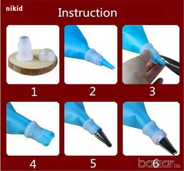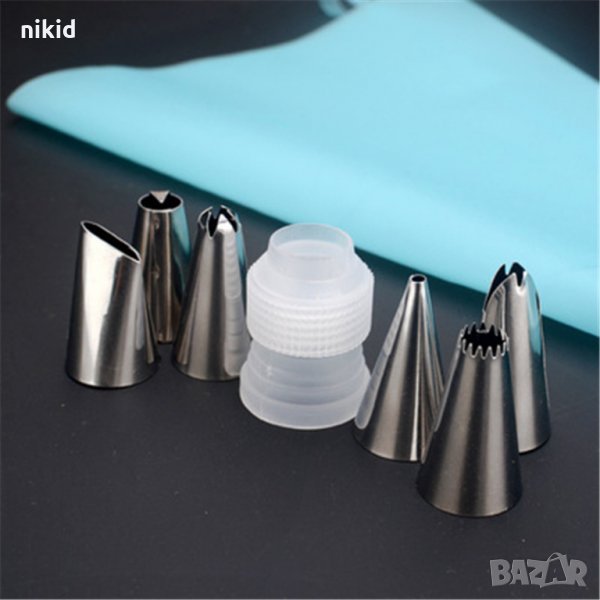 силиконов пош торба за многократна употреба + 6 накрайници + адаптор торта крем декор, снимка 1 - Други - 14624479 силиконов пош торба за многократна употреба + 6 накрайници + адаптор торта крем декор, снимка 2 - Други - 14624479 силиконов пош торба за многократна употреба + 6 накрайници + адаптор торта крем декор, снимка 3 - Други - 14624479 1/3