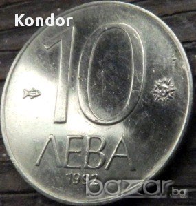Монета от 10 лева емисия 1992 година от серия разменни монети. Метал: CuZnNi, AgNi, тегло 9 грама (0.29 унции),