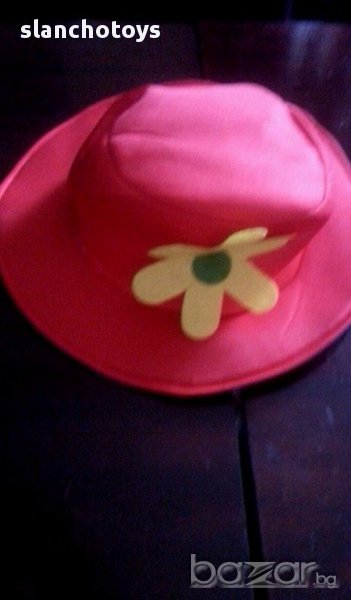 Костюм на клоун, състоящ се от панталон, сако/елек/ ,ризка с папионка,и мека шапка,тип бомбе,направена от дунапрен и плат.