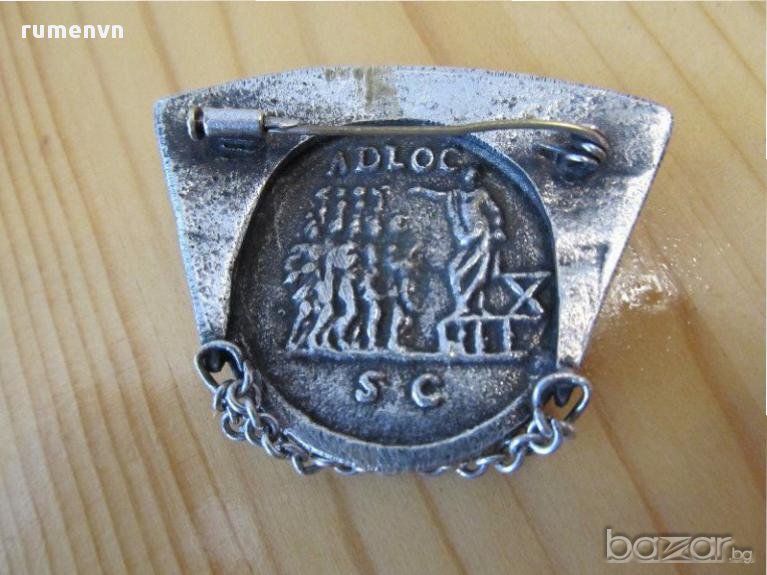 Старинна посребрена брошка с изображение на римска императорска монета Максимин 1 - за ценители и колекционери .
