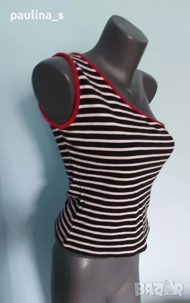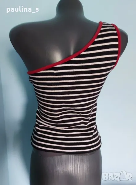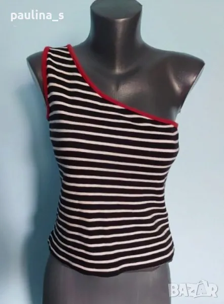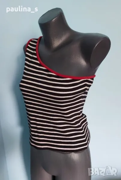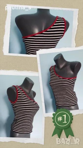 2️⃣ . Колаж / "Blue one casual" Памучен потник с с едно рамо. Цената е крайна 14,99лв 7,5 евро. Асиметричен памучен топ с голо рамо. Материята е 100% органичен памук - трико, има еластичност и покрива няколко размера. Не е нов, но е без дефекти.