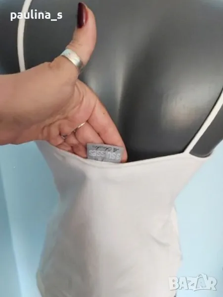 3. Колаж / M / 2XL - "3 issues". Цената е крайна 14,99лв / 7,5 евро. Еластичен бял потник с гол гръб. Моделът е леко втален. Материята е органичен памук и ликра с еластичност и покрива няколко размера. Като нов, без дефекти и етикет.