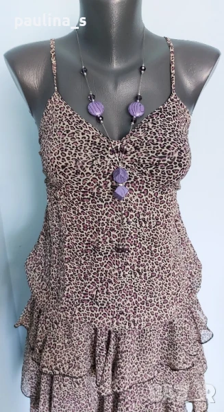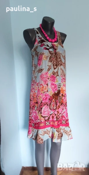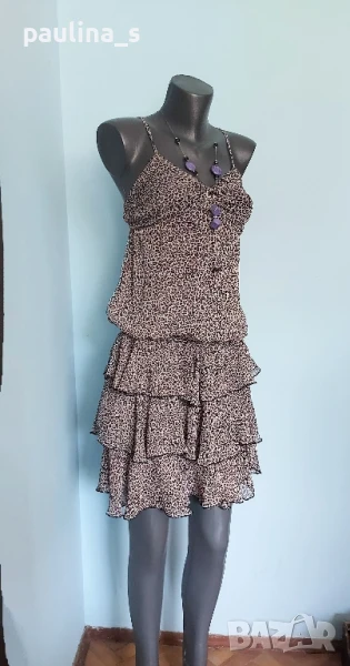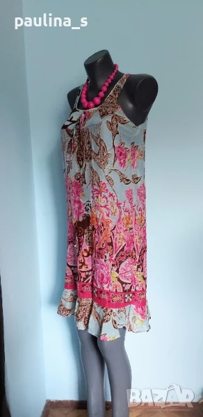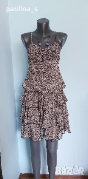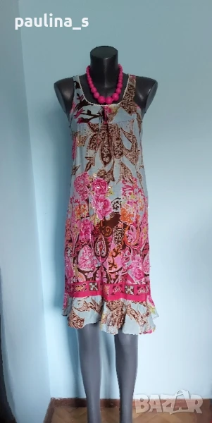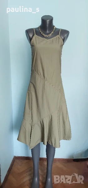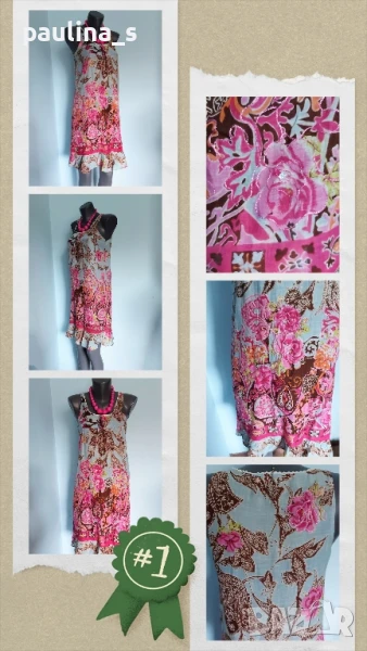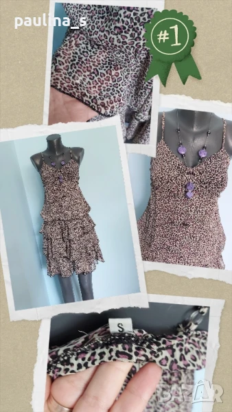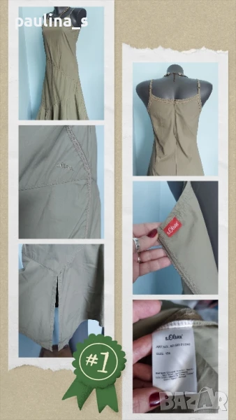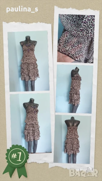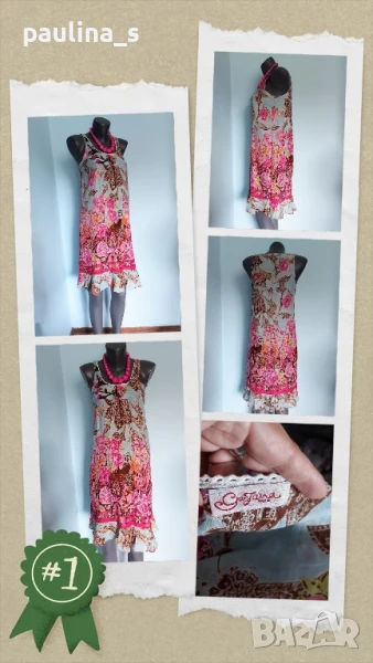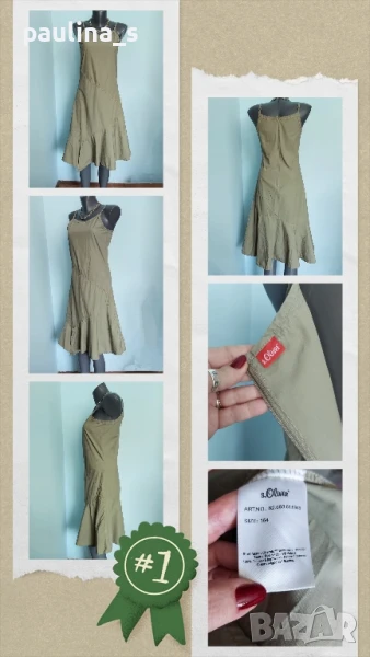 Поради новите правила за заплащане на обновяванията на обявите, моля разгледайте и последните страници на профила ми, обявите са активни и евтини. Четири рокли, различни модели и цени, малък размер. 1️⃣ . XS / M / - "S'Oliver". Цената е крайна 19,99лв / 9,8 евро. Дамска лятна рокля от 100% органичен памук, без еластичност. Моделът е с голи рамене, издължен, а надолу разкроен, за сметка на асиметрична веревно поставени платки с цепка отпред. Цветът е Милитъри / Шам фастък, декорациите са от тънка памучна дантела, налично бродирано лого. Без дефекти и етикет. Подмишници 44см едностранно Бюст 45см едностранно Талия 39см едностранно Ханш 50см едностранно Долу преди цепката 70см Дължина отпред без презрамките 97см 2️⃣. Колаж / XS / L - "H&M". Цената е крайна 9,99лв / 4,8 евро. Зелена рокля с бюстие. Материята е еластично памучно трико, десенът е Милитъри, подхожда на всички цветови гами. Моделът отгоре е като бюстие, а надолу с разкроение. Не е чисто нова, но е без дефекти. Една бройка е, става за посочените размери. ГО 41см до 57см едностранно Подбюст 35см до 52см Талия 36см до 51см едностранно Ханш 46см до 70см едностранно Долу 53см до 72см едностранно Дължина отпред без презрамките 80см Дължина отзад 68см 3️⃣. Колаж / XS / M - Рокля с волани, в лилав леопардов принт, отрязан етикет, не знам какъв е материала и бранда. Цената е крайна и съобразена 19,99лв / 9,8 евро. Материята е копринена органза, с лека прозрачност, без еластичност. Горната част е бюстие с ластици на подгръдната обиколка, талията е с ластици в набор. Презрамките се регулират индивидуално. Без дефекти, като нова. ГО 40с до 47см едностранно Подгръдна 30см до 50см Талия 33см до 51см Дължина 71см 4️⃣. Френска рокля на цветя "GanJana" Paris. Цената е 29,99лв / 14,8 евро. Памучна пъстра рокля GanJana Paris. Цената е крайна. Разкошна пъстра рокля, с волан. Материята е много фин памук с прозрачност, без еластичност. Има контуриращи цветята бродерии и пайети в розово, със сатениран конец. Не е чисто нова, но е без дефекти, почти като нова, наслада за сетивата. ГО 45см едностранно Талия 51см едностранно Ханш 53см едностранно Дължина 92см Моля, разгледайте и другите обяви и последвайте профила. Приятно разглеждане. Може да създадете пакет и да използвате доставката, тогава ще направя отстъпка от общата цена. При единична поръчка, цената не се коментира по никакъв начин, продажбата е с благотворителна цел! За лечение! Благодаря за вниманието и отделеното време 🙂
