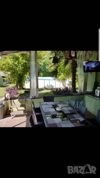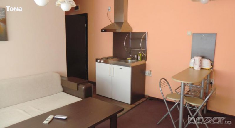 трафопост.Видеонаблюдение. СОТ. Кабелна телевизия.Безжичен интернет.Аларма . - Сградата е изцяло ремонтирана и обновена.Перфектно състояние. --Апартаментите се състоят от Всекидневна с напълно обзаведена кухня-хладилник.ел.печка аспиратор,посуда. Спалня. Голяма лукс баня с душ кабина,бойлер, ел.печка и ел сушилник,тераса с тента,шезлонг,маса и столове. - Всеки апартамент има два телевизора,два климатика,eлектронен сейф,кабелна телевизия,безжичен интернет -Към тях има и помещение за гладене притежаващо и пералня със сушилен барабан. -Двора пред терасите е озеленен с райграс, липи и цветя.Има 65 кубиков открит подвижен басеин/не този на снимката/,4броя тенти,барбекю,хладилници,телевизор,фондю,спортни уреди и други.