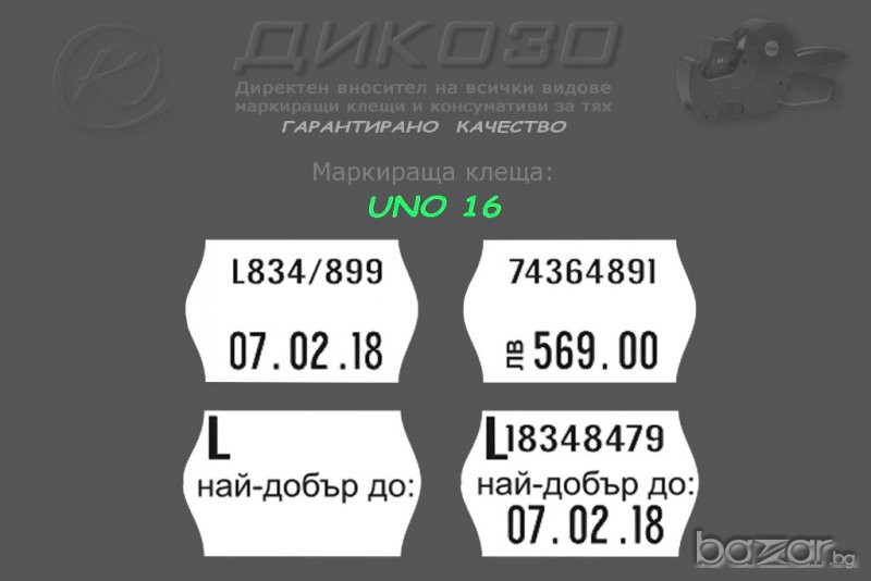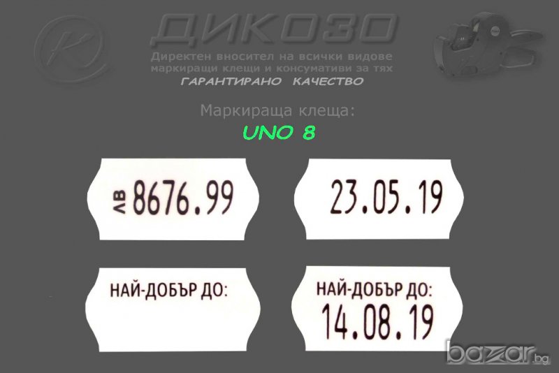 ДИКОЗО ЕООД - директен вносител на всички видове Маркиращи клещи и консумативи. Поддържаме ниски цени и гарантирано качество. Може да получите стоката от офисите ни в София и Пловдив, както и чрез куриер в цялата страна: работим с Еконт, Спиди