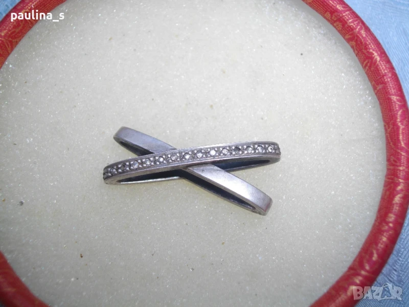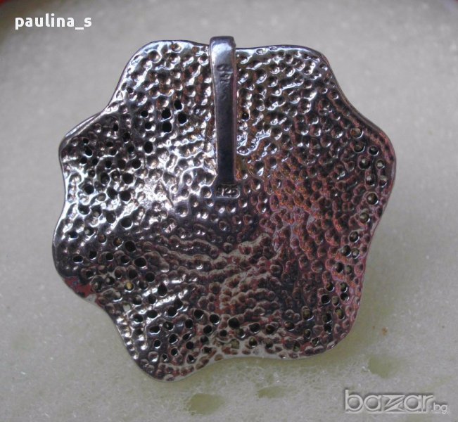 брилянт. Има антична стойност и цена. Много масивен педантив, не се продава на грамаж. Употребяван за кратко, но без следи, отлично качество и аутлук, с футуристичен дизайн. Абсолютен уникат, за ценители на античните бижута. Изделието притежава държавна марка/титър/ за съдържанието на благороден метал в сплавта-сребро 92,5 %. Размери 35мм / 15мм. Камък - натурален циркон ААА. Не се продава на грамаж!