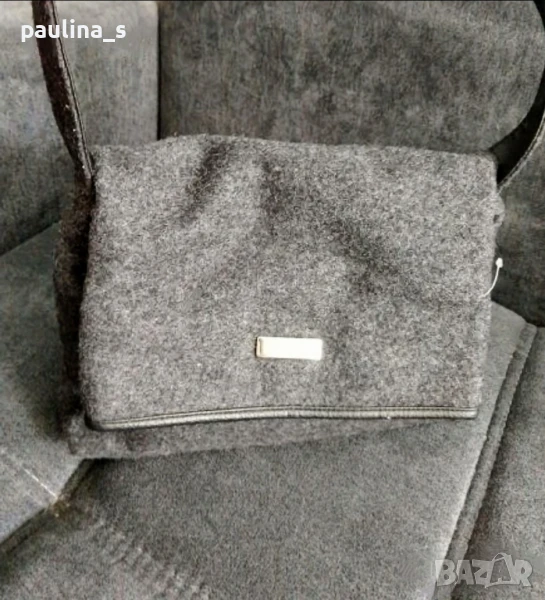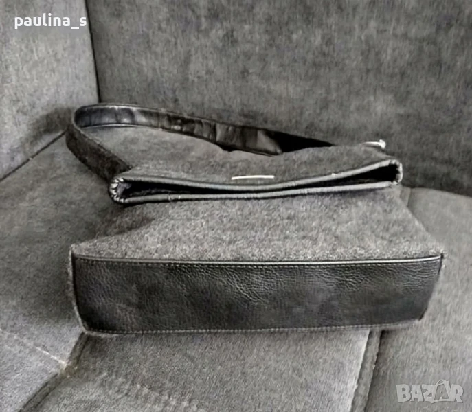 2️⃣. Прихлупваща се чанта "Part two". Цената е крайна 9,99лв / 4,8 евро. Материята е от кашмирена вълна с примеси, има едно отделение и вътрешен джоб с цип, гарнирана с черна кожа, с магнитно закопчаване - 28см / 19см / дъно 6см / дръжка 62см.