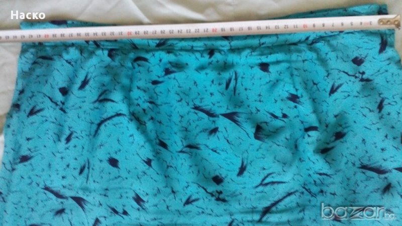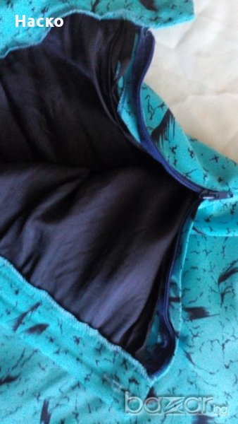 в отлично състояние е , изкуствена материя. трудно ще откриете следи от употреба . размери на полата - обиколка на талия 86-88см, дължина 75смтоп - подмишници - към 106см, дължина 50-52см, разс м/у рамене 40см има подплънки
