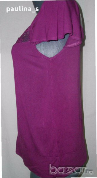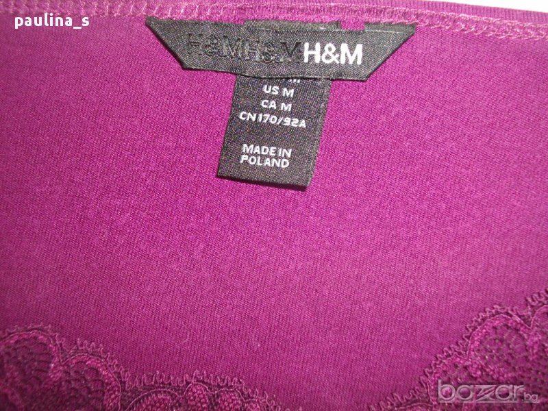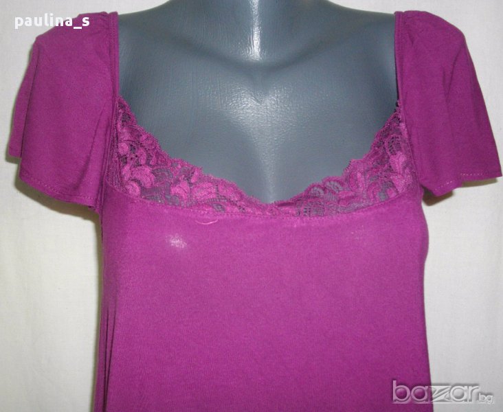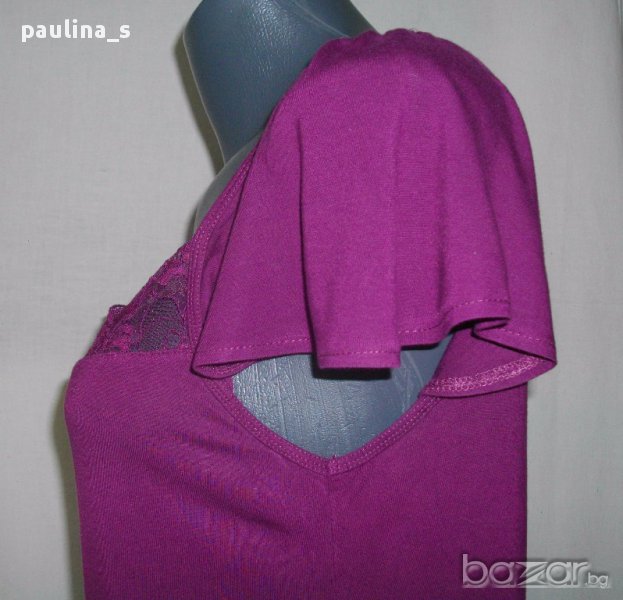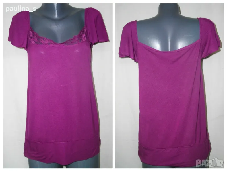 1. Колаж / L / 2XL - "H&M". Цената е крайна 9,99лв. Дамска блуза тип туника с декорирано деколте с дантела и ръкави като малки крилца. Моделът е прав, изчистен, долу завършва с двоен маншет, а отгоре пада в лежер. Без дефекти, една бройка.