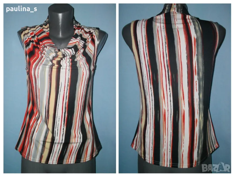 3. Колаж / L / 2XL / Цената е крайна 12,99лв. Блуза с набрано деколте - turtle neck, без ръкави, втален силует. Материята е ликра, много еластична и покрива няколко размера. Без дефекти и етикет, като нова, една бройка е.