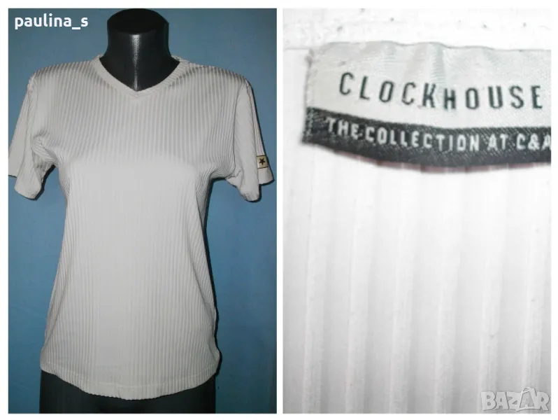 4. Колаж / XL / 3XL / Бяла "Clockhouse". Цената е крайна 19,99лв. Маркова блуза с къс ръкав и V - образно деколте. Материята е рипсена ликра, доста еластична и покрива няколко размера. Без дефекти и етикет, като нова.