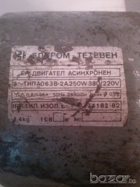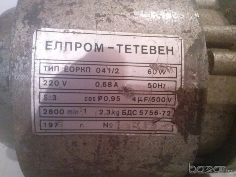 4. 60 Вт. , 220 В.- 2800 об/мин. ,кондензатор 4 мф/500В. -25 лв. 5. 180 Вт., 220 В.-1360 об./мин., кондензатор- 6мФ /600В. -35лв.